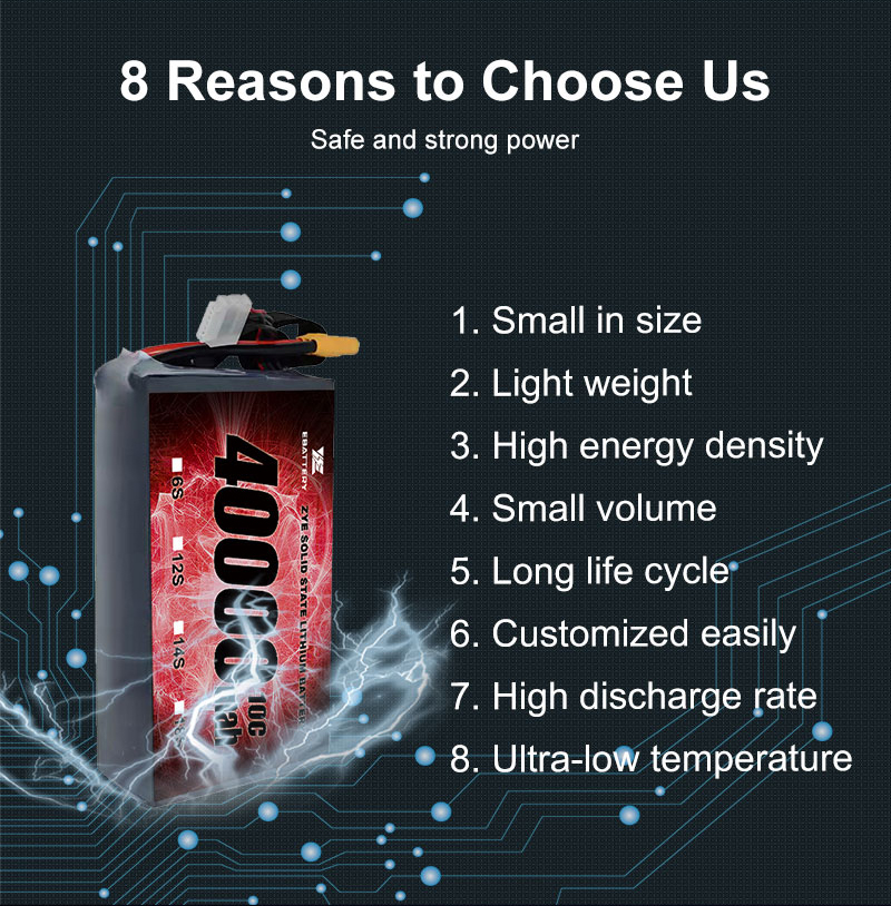 Nossas baterias de estado sólido LI HV 40000mah 6S são carregadas com recursos que garantem que sejam a melhor escolha para suas necessidades: